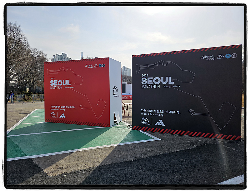 내일 이곳에 10키로와 풀코스 포함해서 3만명이 뛰어와서 몰릴텐데